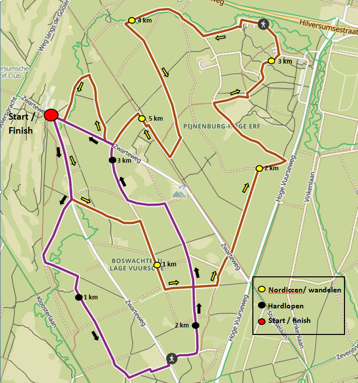 Het startpunt is voorbij Bistro Boschoord aan de Zwarteweg. Er worden twee mooie parcoursen uitgezet: