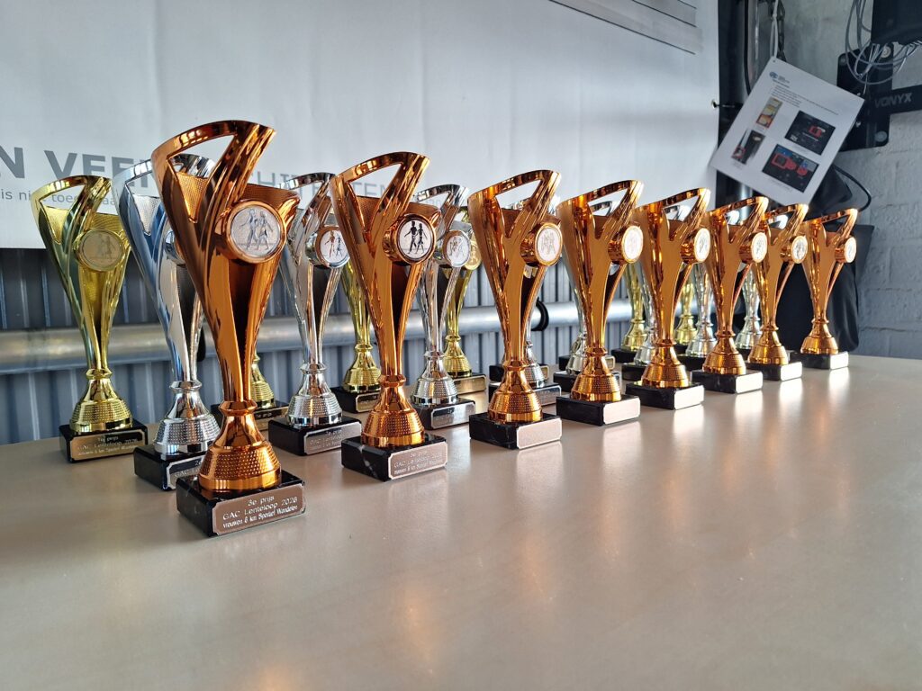 Na afloop werden alle tags netjes ingeleverd en kon rond 11.30 uur de prijsuitreiking beginnen in de kantine. De snelste drie deelnemers per categorie werden gehuldigd en daarnaast werden er vier waardebonnen van €25 van sponsor Run2Day verloot, samen met diverse kleinere prijzen. Het tagnummer fungeerde daarbij als lot — altijd een leuk extraatje!