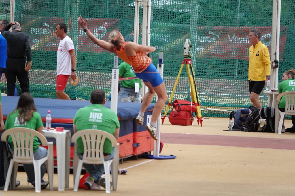 Ingrid van Dijk (W60) begon haar kampioenschap met gewichtwerpen en kwam tot een geweldige 15 meter en 7 centimeter! Bronzen medaille bij de V60! Ook op discus, slingeren en de werpmeerkamp kwam ze in actie, respectievelijk een 5e, 6e en een 4e plek.