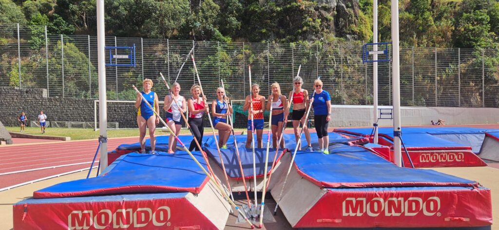 Een week later stond het polsstokspringen op het programma.  Met 10 dames W60+ startten ze de wedstrijd en het werd een bijzondere dag. Brigitte slaagde erin om het Europese record te verbeteren naar 2.85! De 2.90 was een schampschot verwijderd van slagen dus dat biedt hoop voor de toekomst.